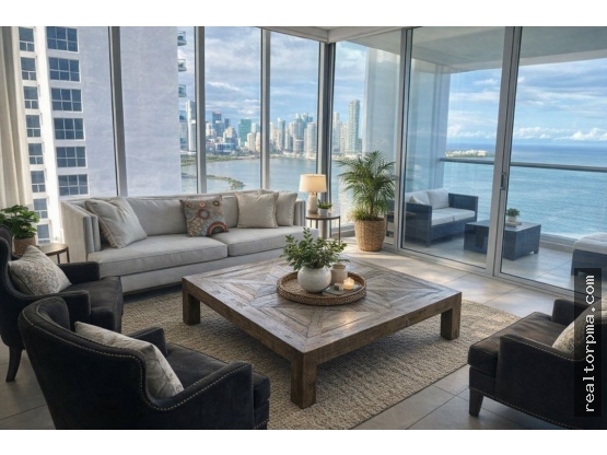 Moderno y luminoso apartamento de 177 m² ubicado en uno de los edificios más exclusivos de la Avenida Balboa, con una espectacular vista directa al mar desde su amplio balcón.